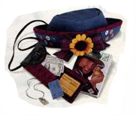 Back on track with meet accessories! White denim jacket, knitted beret, purse, library card, and the usual three dollars.